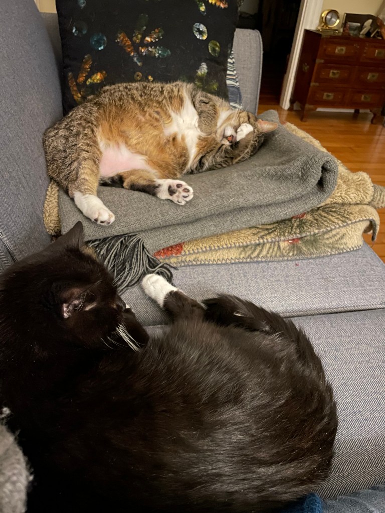Maria beside me on the couch, Stella, well fed!, at the top of the picture