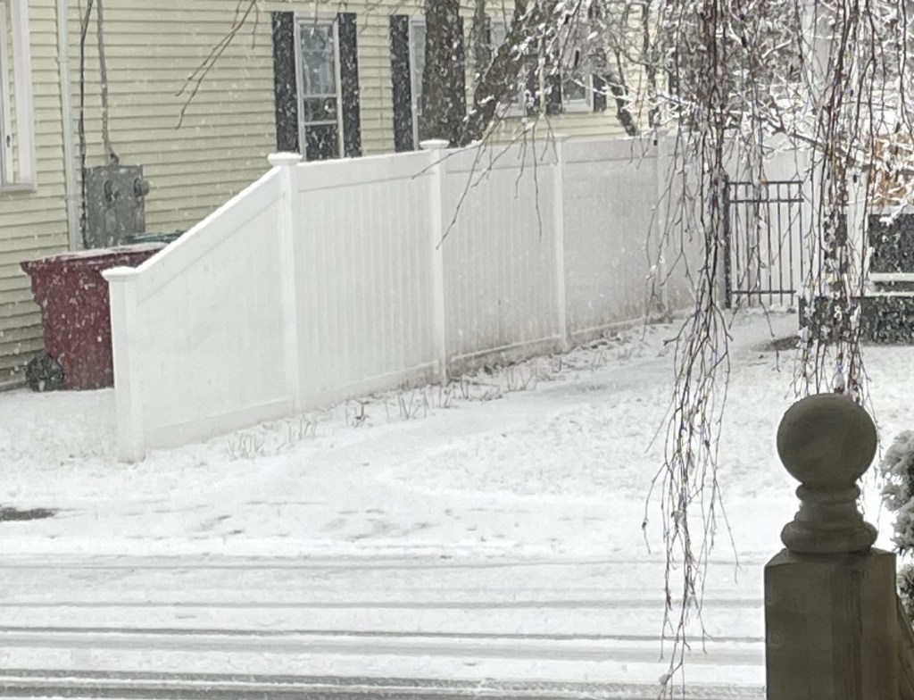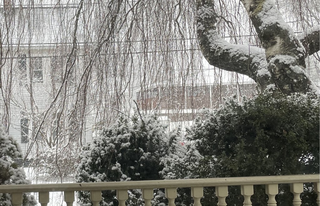 I must tell you that after it snowed this early morning, and as I walked back uphill from the river to the section of the city where I live, it warmed to a couple of degrees over freezing and the snow coat all disappeared. Then, it sleeted. Then is was still and the pavements everywhere returned to visibility from their early morning bright whiteness. And now, early afternoon, the second snow is falling–larger, distinctive shapes distinctly visible, and blanketing all within view. The dogwood out back and the birches out front are wearing attractive and increasingly lofty shawls. (BTW, my phone says it is 37 degrees and sleeting right now. It is NOT!)
