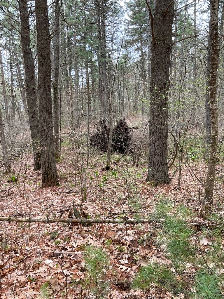 The southeast corner of this lot, along the bottom of the driveway holds an unusual plum tree that rebirthed itself about 8 years ago, and fruited for three years, but did not fruit this year (nor did many flowering, or fruiting plants who time themselves with the peaches — an early spring start, that was rained out this year), as did not the azaleas that front my back porch facing the dogwood tree and the vegetable garden, nor my neighbor’s forsythia.