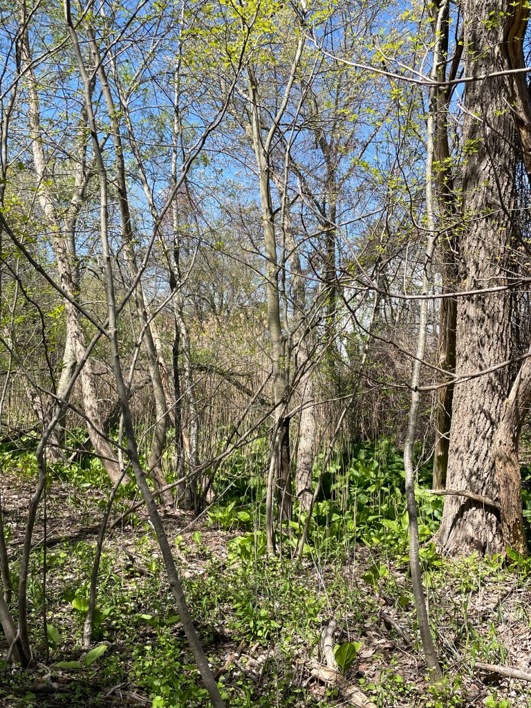 Have I told you this before?–Violets and their leaves are edible, and not only edible, quite tasty. My backyard abounds in violets. Each year they claim a few more inches (I would say feet, but the property just is, I believe 1/20th of an acre, and much of that is taken up by my house, driveway, and a shed. Beside the shed in the northeast corner receiving full noon to evening sun is my vegetable and rhubarb garden, which also hosts a huge stand of daisies, and in which I have now planted a tiny horse chestnut tree. If it grows, I will be happy. If it grows, I won’t have a vegetable garden, but rest assured, that shift in plant life is at least a decade from now. West of that garden space by several inches, well maybe a foot, is the plum tree I planted last year to replace the now absent beehive. Ah, I miss the bees. And west of the plum tree and as the yard becomes shaded by the dogwood tree, begin now, the violets, and they only stop when they meet the well overgrown but still recognizable triangle of bulbs and perennials — daffodils, tiger lilies, a few tulips I have pushed in here and there, soapwart, pinkweed,–, and a wild mulberry bush/tree, the fruit of which the birds robins and I think finches in particular enjoy. South of that triangle and continuing under the dogwood and onto and on the west edge of my backyard are more violets along with a smattering of ferns, until the grass that is holding firm just about level with the back edge of my house. Then grass decorated with ferns (I am pretty sure my property’s water table rides quite high below the surface). There are many other wildflowers growing there too, pink ladies, plantains, jack in the pulpits, lord, so many — I should bring the wildflower book out back and mark off all the varieties here.