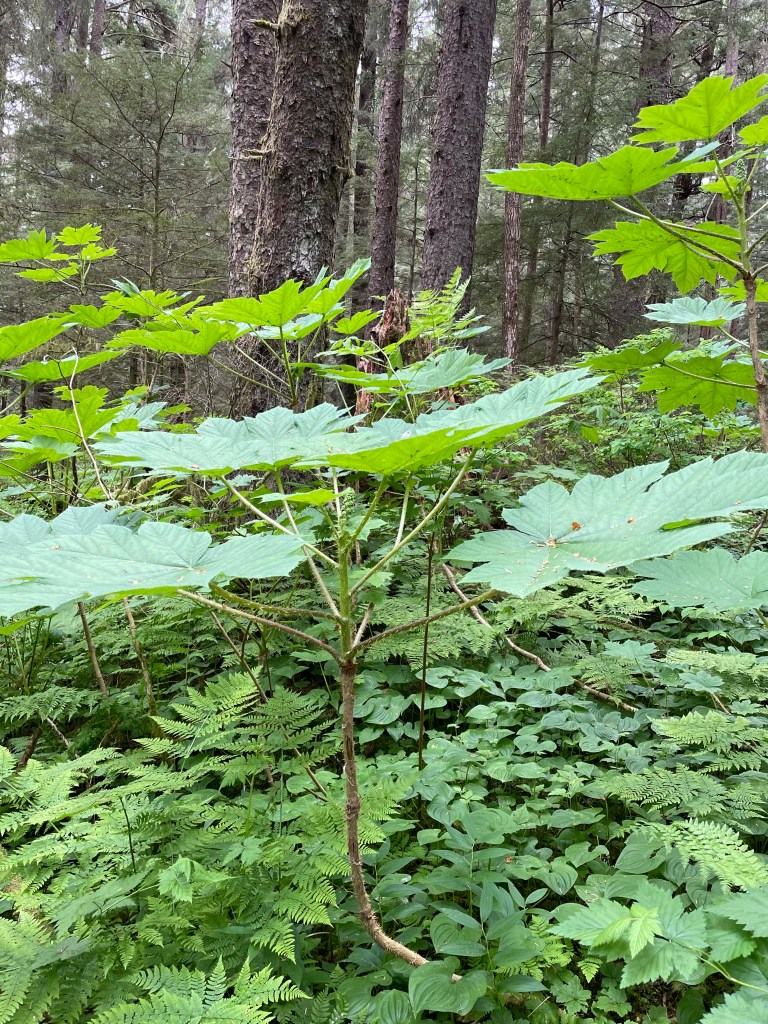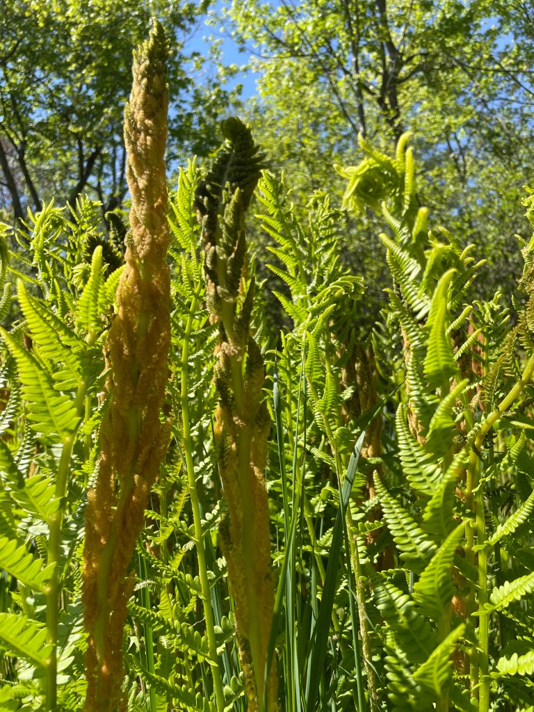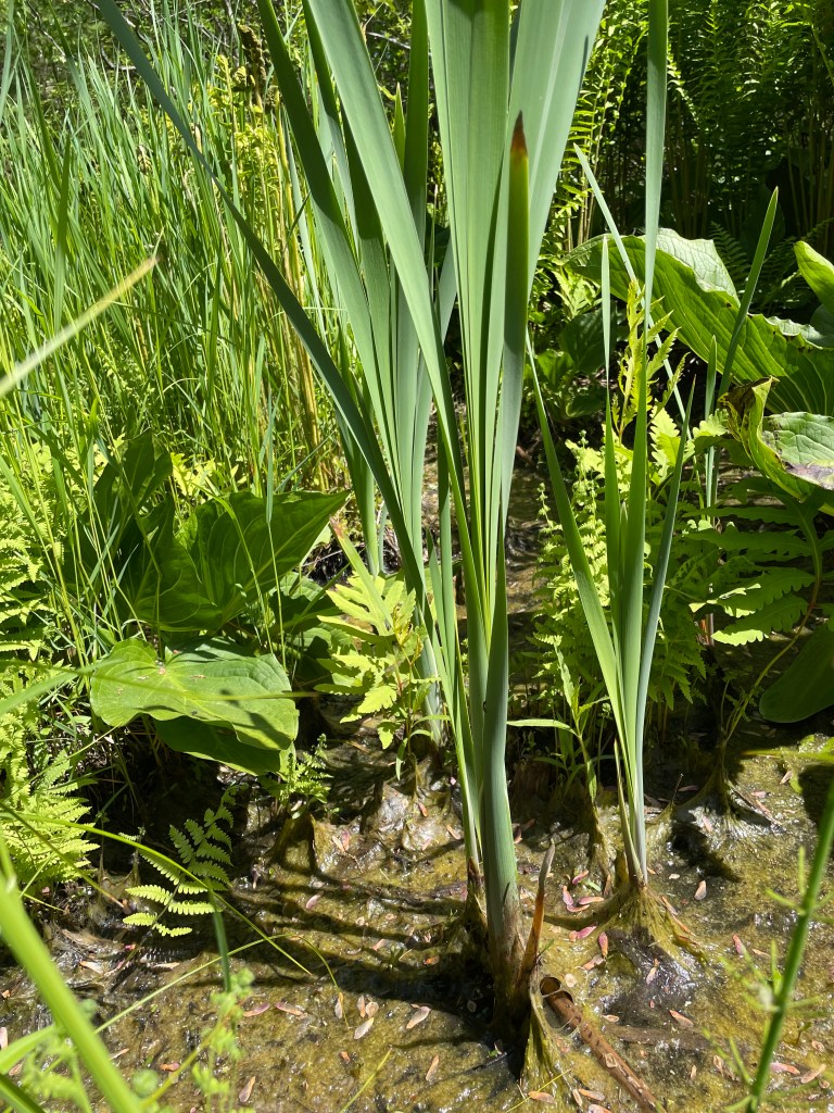 South of this to be reidentified plant is a hefty stand of ferns, interspersed, right now with some rogue goldenrod. Just south of this stand of ferns is a very abundant stand of goldenrod, stretching along the house for two windows. There are other perennials that share much of the space the goldenrod reigns within, at other times of the year, toad something or others, lilacs, Queen Anne’s lace, some fleabane daisies, other wildflowers, and, in season, several different bulb and rhisome plants. Then there is a rose of sharon that is shedding itself a bit more each year. I think I have maybe two more years of its friendly white flowers with magenta centers. There is also a hydrangea that each year, as the shade from two large weeping birches expands, loses more of its share of sun, and flowers barely, maybe one maybe two blossoms. There are also sedum holding their own in the shade of those same birches. and increasing in girth each year are stands of lance corporals, whose red lance is just beginning to emerge now out of their tops.