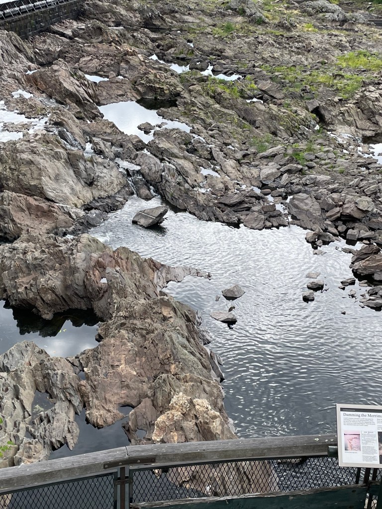 And the river is low. The mighty Merrimack is mighty, nakedly rocky.