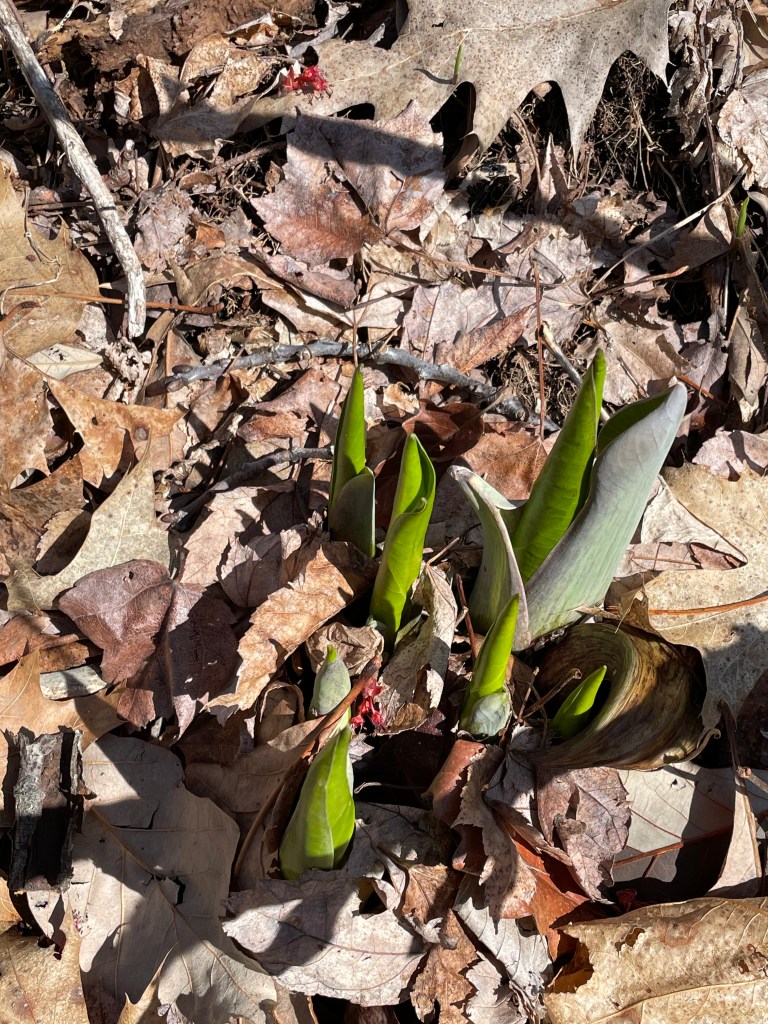 It is almost the last of March. I have raked the oak leaves off most of the bulbs and rhisomatic (?) shoots, so to enable them to emerge undistorted — oak leaves sometimes grip an emerging shoot within one or two of the oak leaf’s sinuses, and if I don’t come to the rescue first, the shoot’s leaves grow into full size with a crimp or two or three in their height, so they look more like a drill shaft than a screwdriver shaft, this is assuming they escape the grip of the oak leaf! I have not raked the oak leaves out of the vegetable beds yet, and it’s just as well, because we here remain in the 30s, despite a day in the 50s a week or two ago. Yesterday, Saturday, March 29th we here were at 35oF while in NYC it was 65oF. I report this because it is unusual For those of you not residing in the Northeast of this country, I report this because it is unusual. Usually we are in relative tandem, maybe 5 or 10 degrees colder up here compared to NYC, and usually with bitterer winds. So while New Yorkers were traipsing about in shorts and brunching at sidewalk cafes, we in mid and northern New England had redonned our winter jackets and leggings.